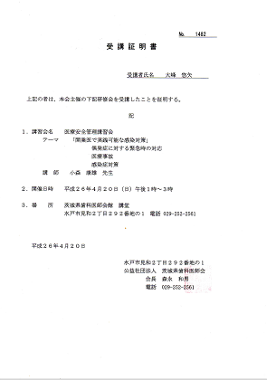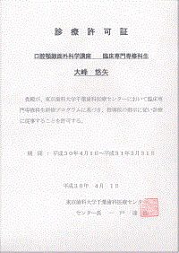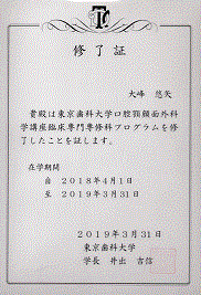 大学院入学許可証交付 笑気鎮静法や局所麻酔のための入会