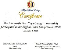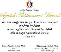 2006年 東京歯科大 英語ポスター(口腔病理) prize for excellence